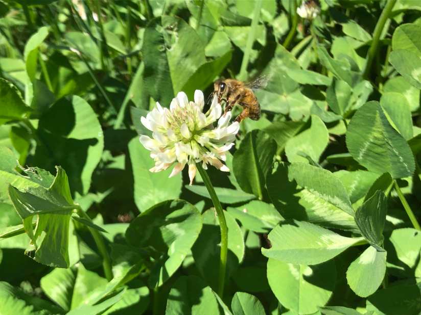 Grass is great if you like outdoor carpet but it is not practical especially if you are a beekeeper. I am slowly removing the grass in favor of cover crops and clover is one. It is the gift that keeps on giving throughout the year and helps choke out grasses and weeds which makes the bees and I very happy. Though clover honey is about as plain and generic as it gets, it is a very valuable source of forage for all pollinators. Bonus, I get tons of 4-leaf clovers from it too so one could probably say I have “lucky bees!”